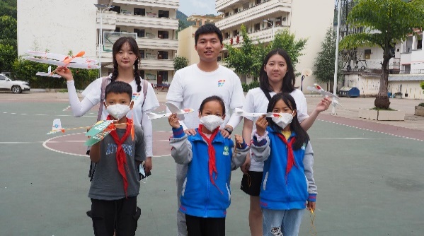 7月5日,国产A片 、共青团蒙自市委2022年暑期“三下乡”社会实践团队来到蒙自市水田乡留守儿童之家和童鑫小学开展“大手牵小手 共筑航空梦”主题活动。活动以航空知识普及、种植航空梦为主线,大学生和小学生一起制作航模、体验模拟飞行乐趣、飞向蓝天的快乐。