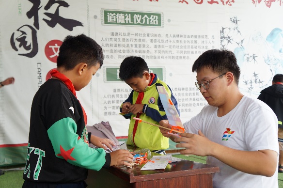 活动中,实践活动队员结合所学专业知识,为孩子们上一堂别开生面的“航空知识课”,普及航空知识,种下蓝天梦的种子。孩子们通过模拟飞行摇杆设备,过一把“开飞机”的瘾。队员与孩子们合作动手一起制作专属航模,在此起彼伏的欢呼声中,一架架亲手制作的航模陆续飞向蓝天。“我的梦想是成为飞行员”,通过简单、趣味的方式让小朋友们充分了解成为一名飞行员需要具备的身体条件,实践活动队员也切实感受到孩子们的天真可爱和对航空的好奇与渴望,鼓励孩子热爱运动、加强锻炼,长大后成为翱翔蓝天的雄鹰。