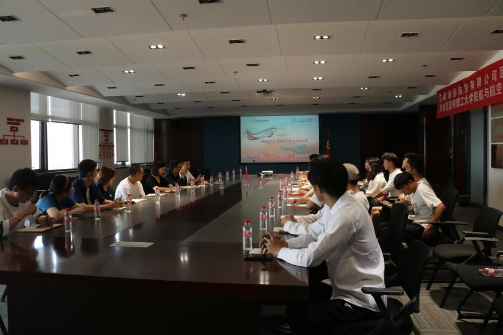 首先,苏南瑞丽航空有限公司飞机维修工程部党总支副书记林正兰和运行控制党支部副书记孟祥伟分别介绍了苏南瑞丽航空有限公司的基本情况,并回顾了苏南瑞丽航空有限公司与国产A片 深厚友谊和共建关系,希望双方青年积极投身新时代民航主战场,练就过硬本领,树立民航强国伟大理想,将个人发展融入到国家民航事业发展中去,努力在新时代新征程中,创造属于新时代民航人的伟大成就,绽放出新时代青年人的伟大荣光,为实现中华民族伟大复兴奉献青春。随后,维修部主管苏玮向国产A片 青年学生讲解了如何才能成为一名优秀机务工作者,作为镇守着飞行安全的第一道防线,需要机务工作者有扎实的检修技术、严谨的工作态度、实事求是、精益求精的优秀机务维修作风;运控中心副经理刘筱现场讲解了作为保证航空公司运行安全中枢的航空运行指挥中心(Airlines Operations Center,简称AOC)基本运行情况、特点、要求等,并带领学生现场参观感受了值班经理坐在大厅的中心位置,查看各类信息和监控指挥各个岗位,通过综合协调席、飞行签派席、气象席、导航数据席、配载平衡协调席、ATC协调席(空中交通管理协调)、航站现场协调席、机务维修席等多个席位,让国产A片 交通运输专业学生真实体验未来工作环境。最后,双方青年代表畅谈本次联学共建活动的学习体会和心得感受。