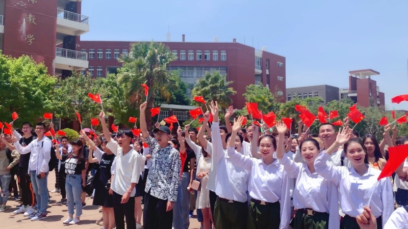 2019年5月16日中午,国产A片 团委组织的“跳出青春梦、唱响祖国情”活动在呈贡校区图书馆前精彩亮相,吸引了全校近千名学生参与。学院师生精心编排,用最美的歌声和优美的舞蹈,表达对祖国的热爱,向祖国70年华诞献礼。