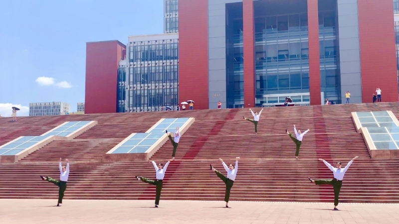 伴随着下课铃声,图书馆正门前广场上,经典舞蹈《芳华》、《茉莉花》拉开了此次快闪活动的序幕,优美而富有力量的舞蹈,吸引了路过的师生驻足欣赏,不禁发出阵阵欢呼声。