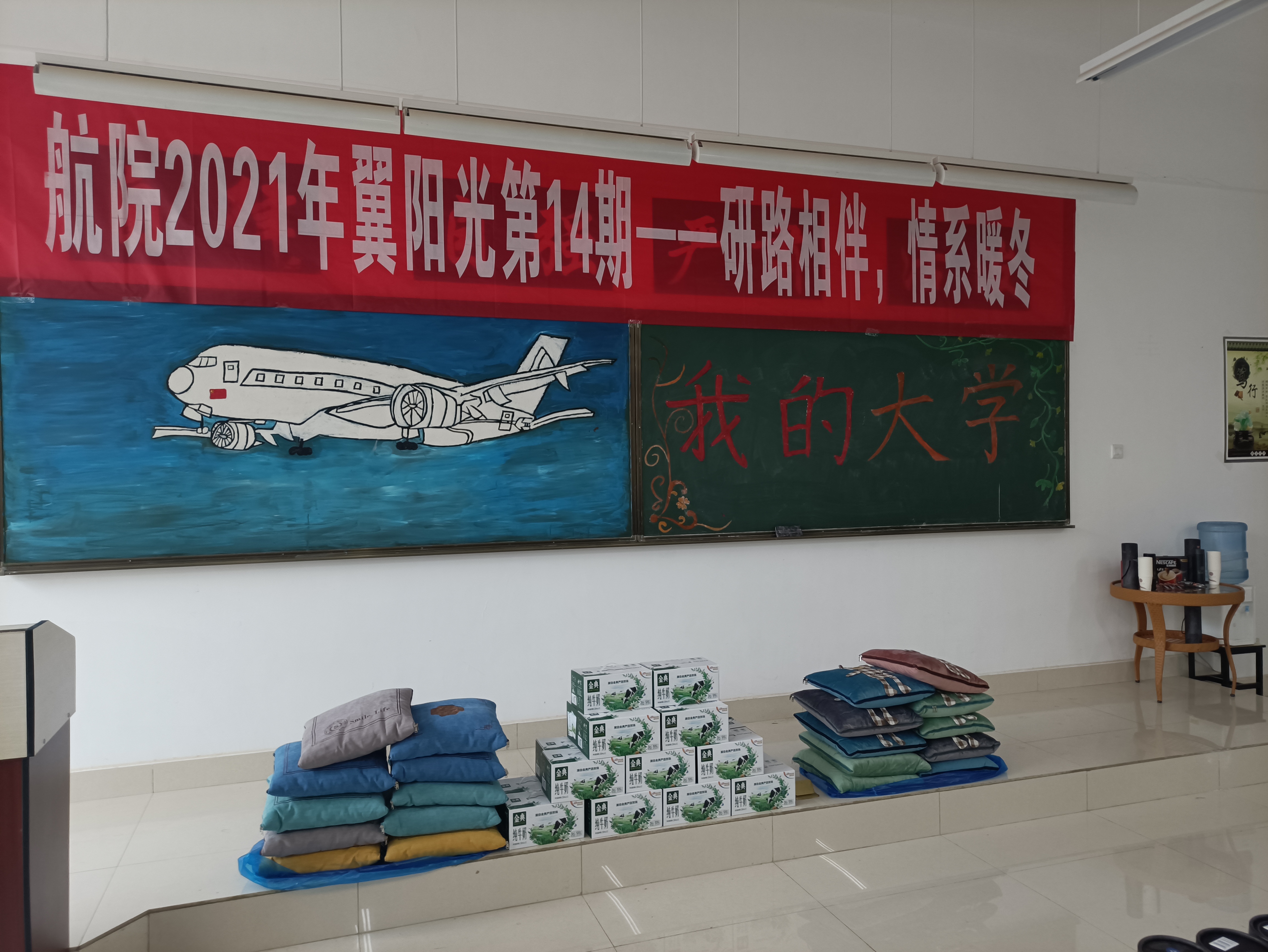 活动现场,学院负责人表示学院将全力支持同学们考研,尽可能提供保障,希望考研同学在最后冲刺阶段积极准备,用最佳的状态与最好的心态争取最后胜利。随后,学院老师们为同学们分发了牛奶、抱枕、专门定制的保温杯等慰问品。