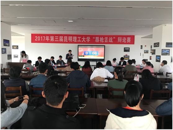 10月28日上午,民航学院由苏宜宽、邱柏铭、谢京松、徐明乾等4名同学组成的“对不队”辩论队在呈贡校区图书馆8楼报告厅,与艺术与传媒学院同学组成的“舌灿莲花”辩论队就“发展旅游业利大于弊”进行辩论交锋。