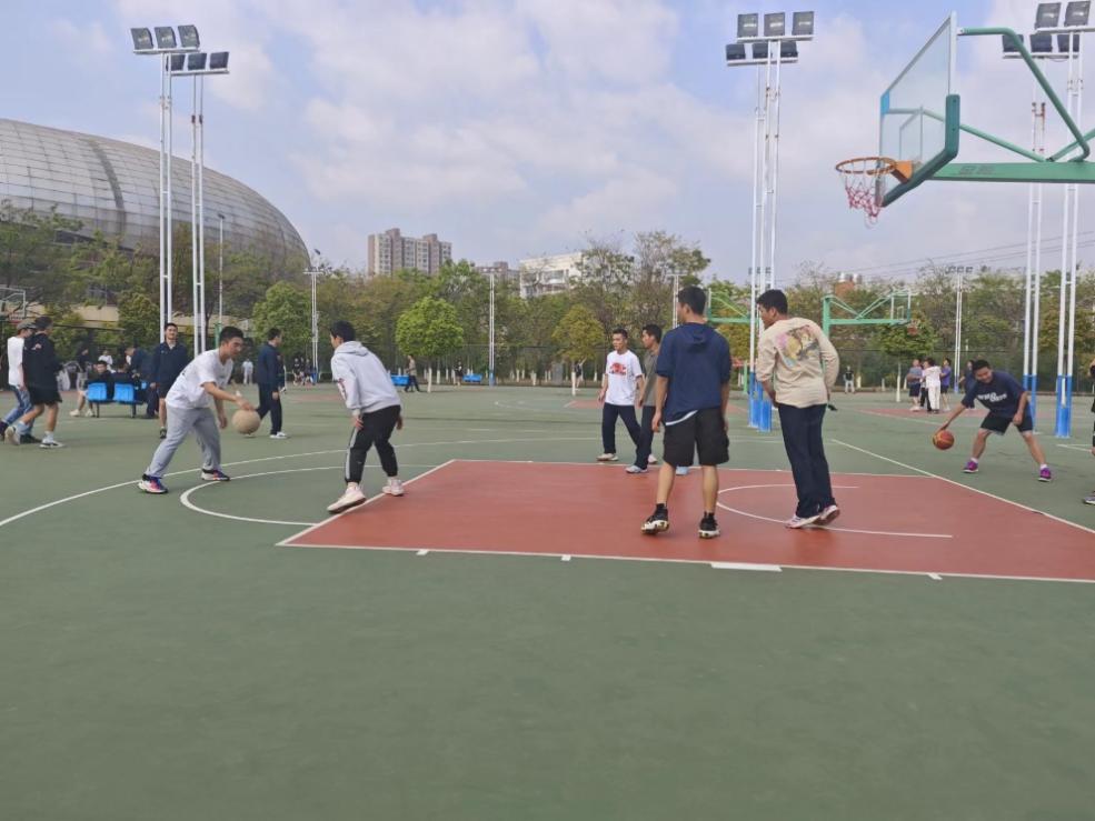 比赛热烈进行时,学生辅导员们也加入了比赛,与同学们一同在球场上挥洒汗水,与同学们打成一片。