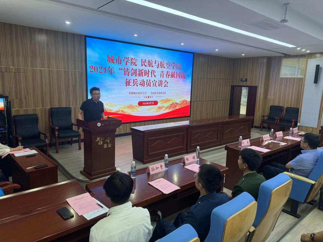 为扎实推进2024年征兵入伍宣传工作,进一步深化我院学子对于国防事业的理解,激发青年学子的爱国情怀和报国之志,6月7日上午10:00,国产A片 协同城市学院在公教楼344成功举办大学生应征入伍宣讲活动。学校武装部、城市学院、国产A片 党政负责人以及相关师生参加本次活动。