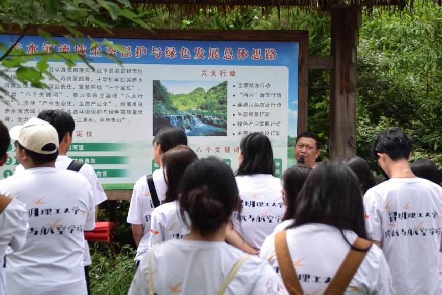 在赤水河源头,村书记带领我们走近展板,生动讲述镇雄守护母亲河的故事。围绕‘巩固最美生态河流’的宏伟目标,当地积极实施了‘六大行动’,以构建全面而有效的生态保护体系:借“人防 + 技防”推进全面禁渔;通过生活垃圾分类和治理污水排放实现两污归位;以有机肥代替化学肥料与禁止使用含磷洗衣粉等一系列措施,管控农业面源污染;用土壤焕新、水质净化和森林复绿,全方位扮靓流域;用绿色产业、美丽乡村建设,打通生态价值转化通道,让生态优势成为发展底气 。