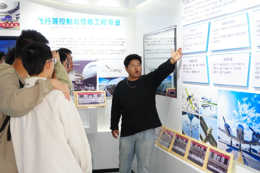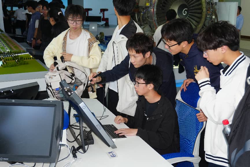 基地内,丰富的航空模型、生动的科普展板、先进的演示设备一应俱全,从中国自主研发的战斗机到各类民航客机模型,从航空发展史到前沿航空技术应用,全方位展现了航空领域的发展脉络与科技成就。讲解员结合实物与案例,用通俗易懂的语言为同学们讲解了航空原理、飞机制造工艺等知识,还介绍了模型中运用的热喷涂等专业技术,让抽象的航空知识变得直观可感。同学们驻足凝视、认真聆听,不时举手提问,在一问一答中解锁航空奥秘,感受着航空科技的神奇力量。