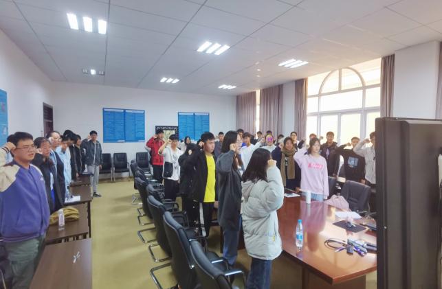 会上,团支部书记对团支部开展党史学习情况、会前准备情况及团支部工作情况进行汇报。全体团员围绕理想信念、政治素质、道德品质、纪律意识等维度,结合自身情况,开展批评与自我批评,推动团员学有标尺、行有所依、评有所据,加强新时代团员先进性建设。随后进行团员先进性民主测评,测评结束后团委老师杨杰对此次组织生活会表示肯定并鼓励每位团员更加积极地参与班级团支部建设;辅导员张秋月鼓励同学们积极改正问题,努力成为更优秀的新时代青年。最后,由张秋月带领全体团员重温入团誓词。