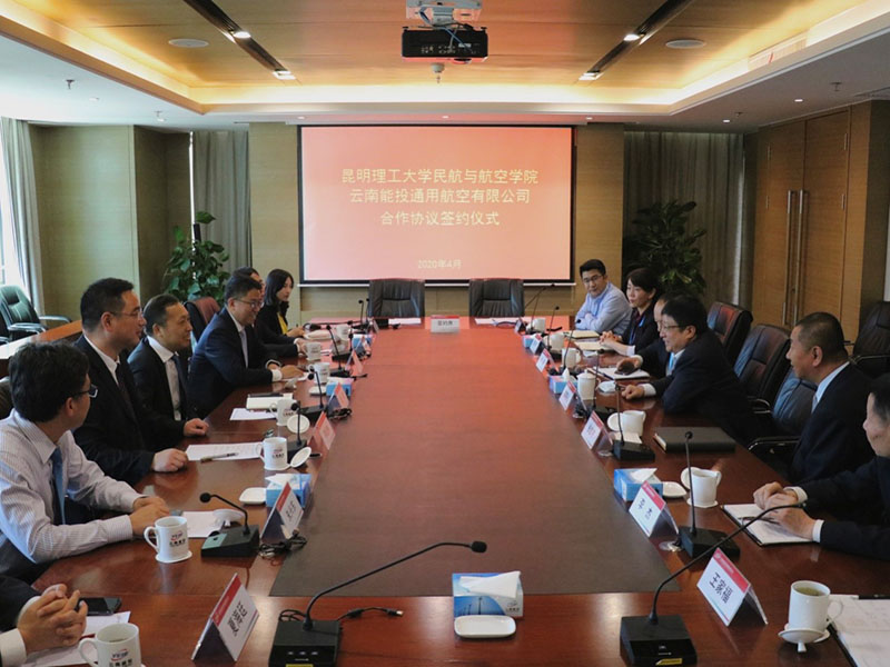 4月15日,国产A片 与云南能投居正公司进行座谈交流,并与所属的能投通航公司签订合作协议。国产A片 院长吴建德教授与云南能投居正公司副董事长、通航公司执行董事张志宇代表双方签订合作协议。