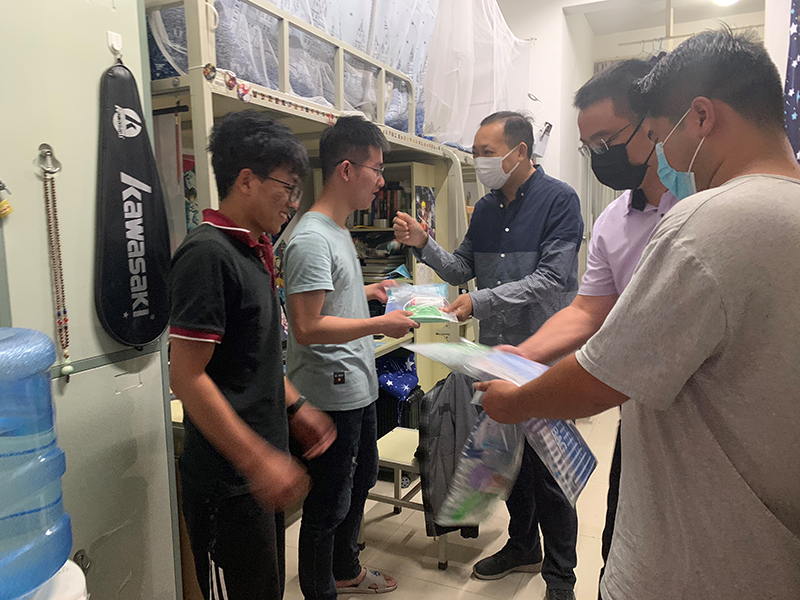 按照学校统一安排,6月22-23日,国产A片 2016级学生返校复学。23日晚,学院党委书记赵耕、副书记周业林以及辅导员深入学生宿舍看望返校学生,并向学生发放了防疫健康包,送上离别的问候和温馨的祝福。