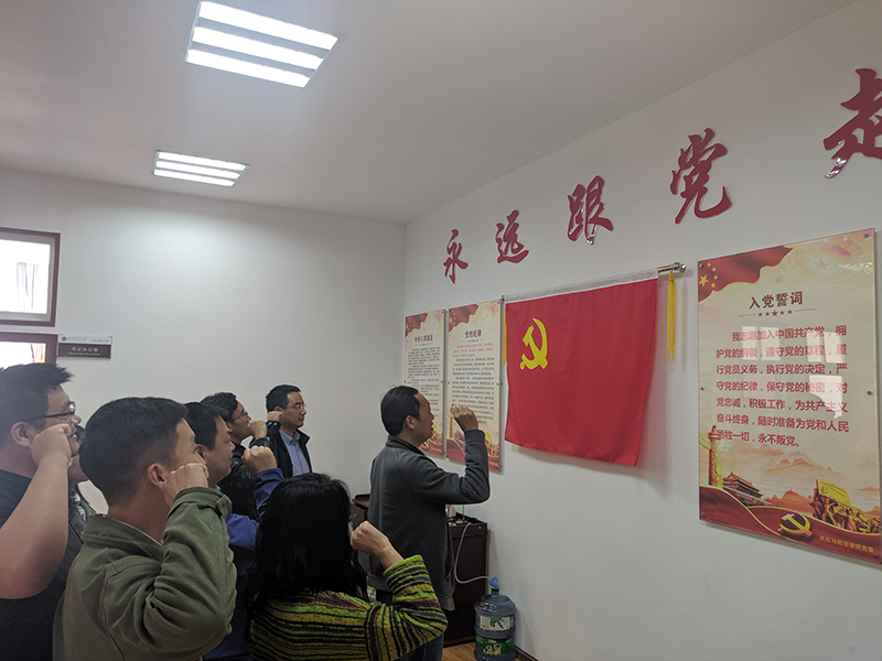 最后,赵书记带领全体参会人员面对党旗重温了入党誓词。