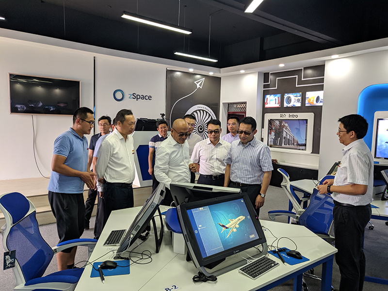 姜副总经理一行首先参观了学院民航教育发展史展厅、波音737NG虚拟维护训练实训室、航空发动机虚拟仿真实训室、签派模拟实训、机场运行控制实训室、飞行模拟实训室及无人机研发3D打印创新实验室,对学院近年来的建设与发展给予了充分肯定。