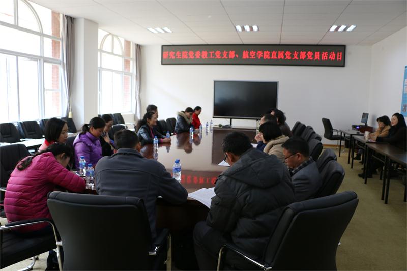 2017年12月4日下午,研究生院党委教工党支部与航空学院直属党支部在航空学院335报告厅联合开展“党员活动日”主题活动。研究生院党委书记宋振华、副书记黄荣军、副院长宋佳、陈亮及各科室负责人,航空学院直支书记李振山、常务副院长沈颖刚、直支副书记朱兴东、副院长付晓东及教工党员参加活动。
