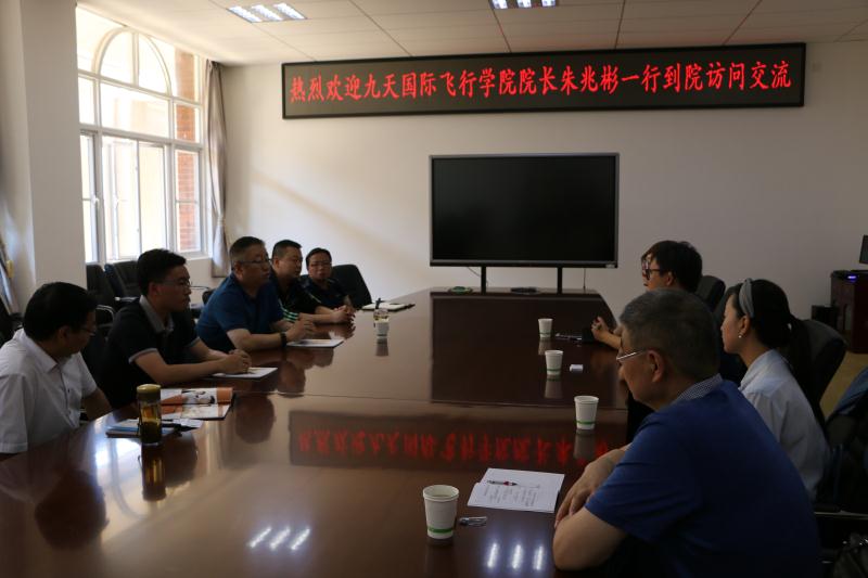 6月7日上午,九天国际飞行学院朱兆彬院长一行4人访问航空学院并座谈交流。