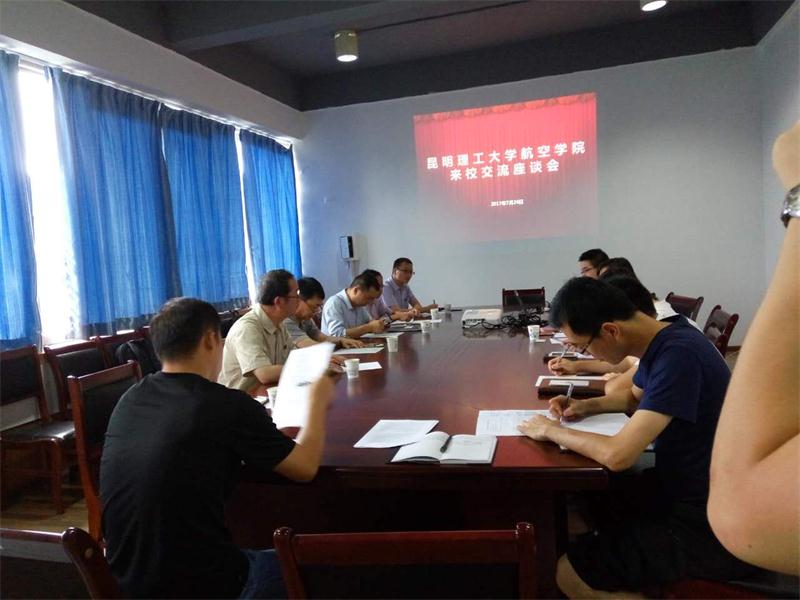在贵州理工学院航空航天学院,贵州理工学院航空航天学院副院长黄芳教授主持座谈会,相关部门负责人和教师参加了座谈会。在听取黄芳副院长关于贵州理工学院航空航天学院办学背景、办学思路、主要进展等方面的介绍后,沈颖刚常务副院长介绍了国产A片 航空学院的办学背景、思路和进展,并进一步指出,国产A片 航空学院和贵州理工学院航空航天学院同处云贵高原,具有相似的办学背景,面临相同的发展机遇,应取长补短、加深合作。双方一致认为,应进一步加强联系,相互提携,为加快建设高水平航空学院而努力奋斗。