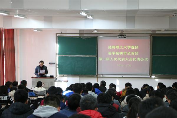 2016年12月26日,呈贡区第三届人民代表大会国产A片 选区选举大会在我校呈贡校区隆重举行。我院作为23个分会场之一,在公教楼344召开了选举大会,全院共有176名符合选举资格的师生选民参加选举投票,选举大会由学院党委副书记赵耕主持,选举大会在庄严的国歌声中正式开始。