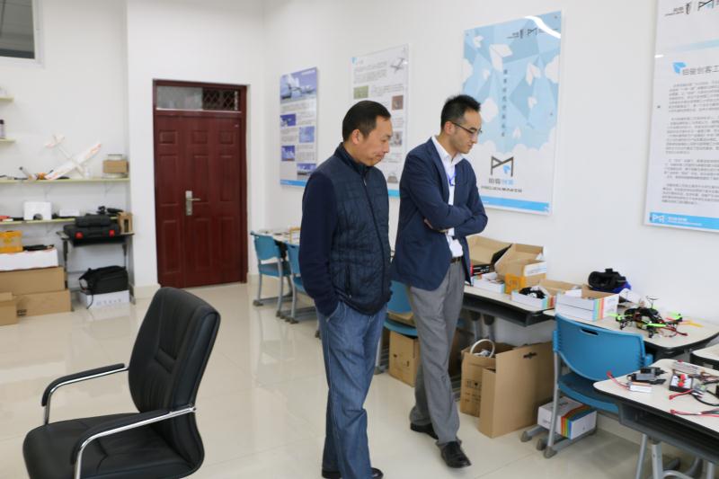 航空学院赵耕副书记、沈颖刚副院长、刘增力副院长等陪同参观了航空学院学生活动中心、云南航空教育史展览室、飞行模拟实验室及铂骏创客工作室。