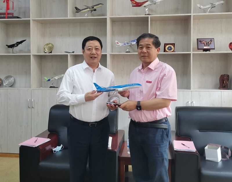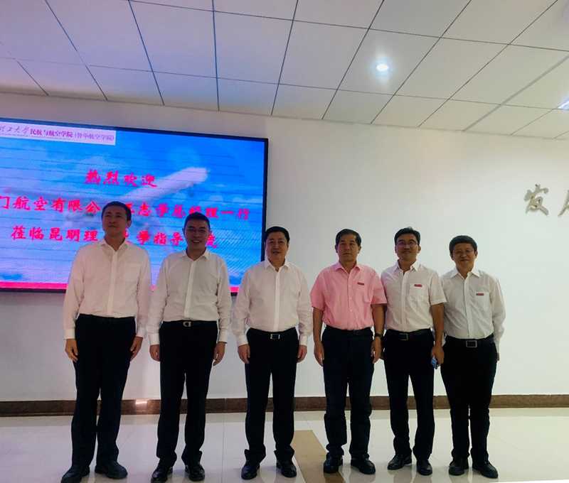 8月26日下午,厦门航空有限公司王志学总经理一行到国产A片 调研交流。国产A片 党委副书记、校长王华,副校长夏雪山出席活动。