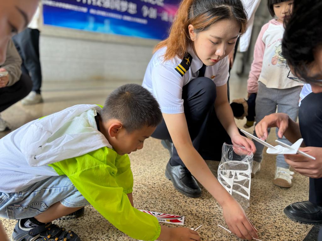 活动的最后,飞行学生党员手把手教幼儿园小朋友制作并放飞简易飞机模型,让孩子们在愉快的氛围中加深对飞机的认识,在孩子们的心中种下小小飞行梦。