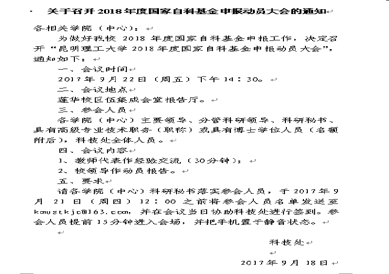 《关于召开2018年度国家自科基金申报动员大会的通知》已发送至科技网,请及时关注。
