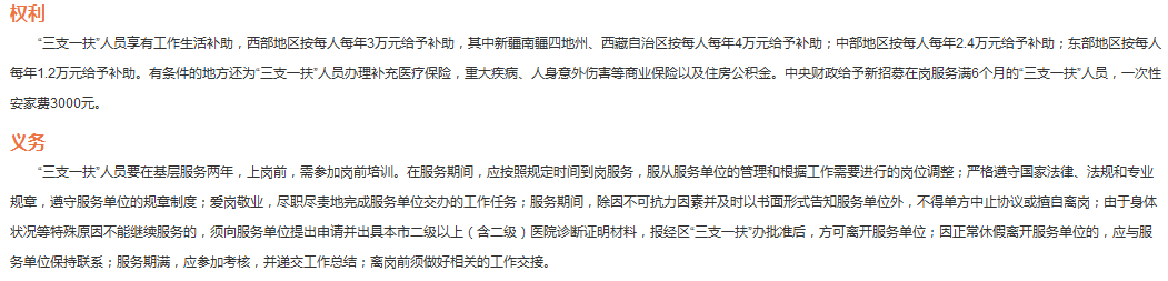 “三支一扶”人员享有哪些补贴和权力?